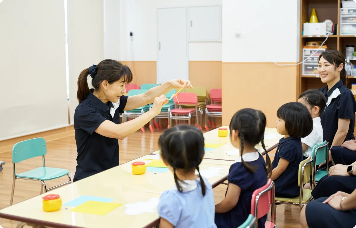 保護者から離れ、初めてお友達との交流や、これまでの生活では経験していないことを体験し、自立心と臨機応変な対応力を養います。