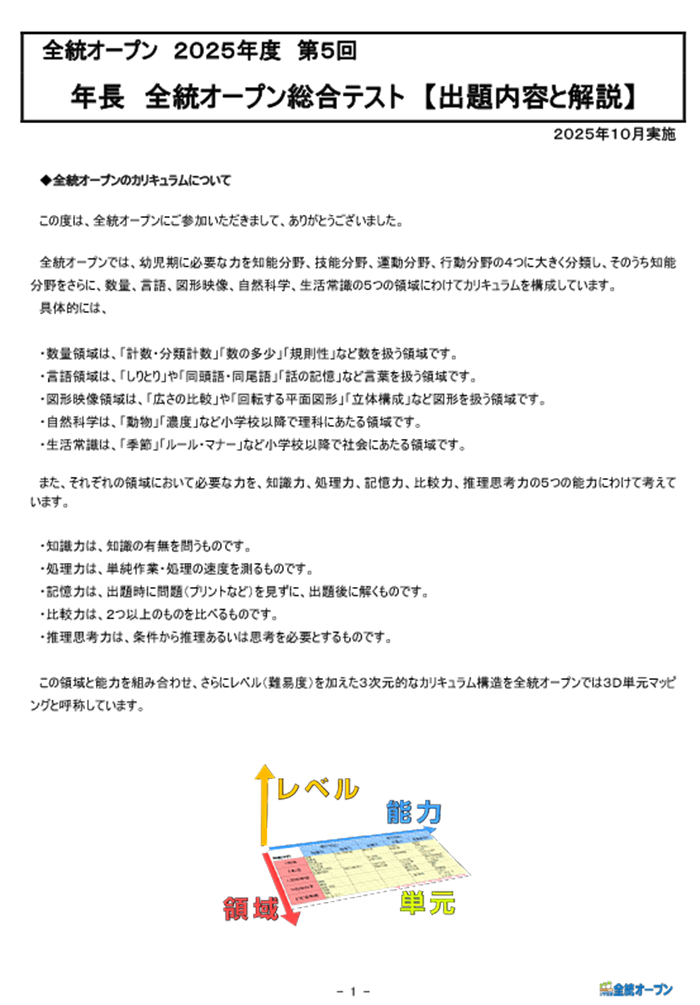 - 推理思考力、図形映像、自然科学、知識力、言語、数量、他